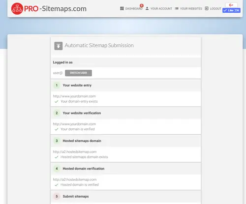 - We host your sitemap files on our servers and automatically submit it to search engines